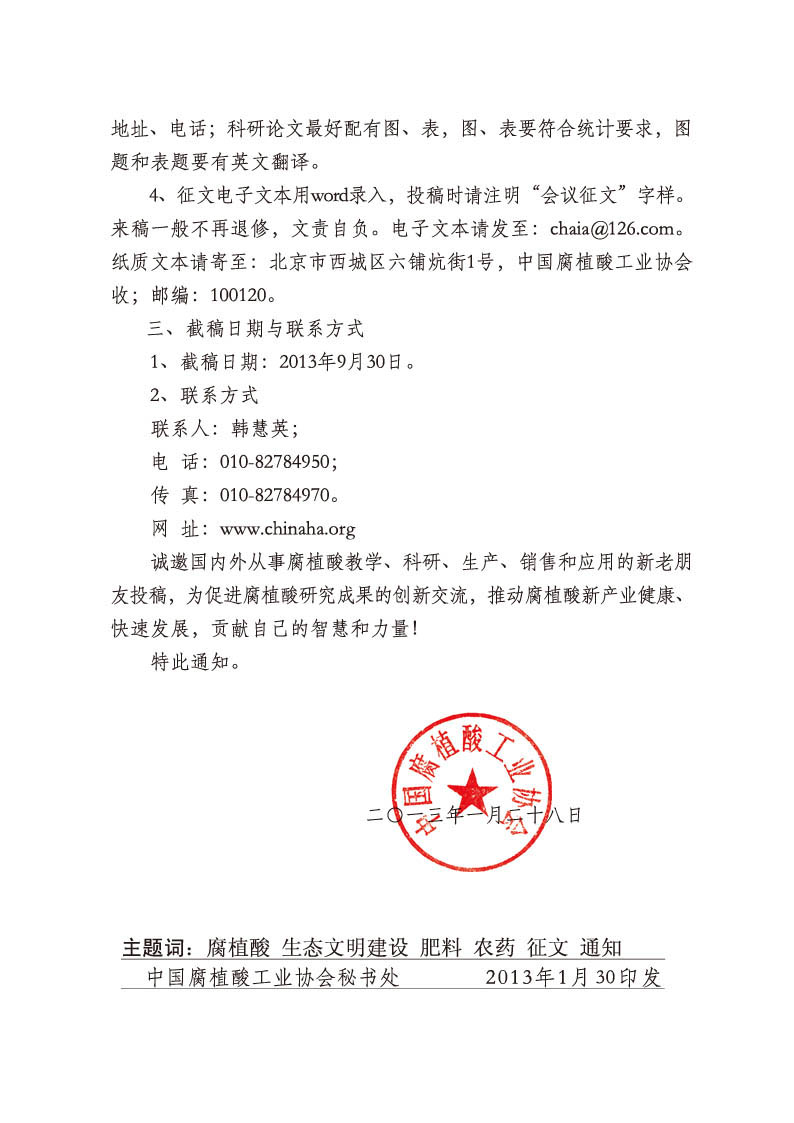 中國腐植酸網 地址:北京市西城區德外大街36號德勝凱旋大廈B座1513 電話:010-82035180 電子郵箱:chaia@126.com