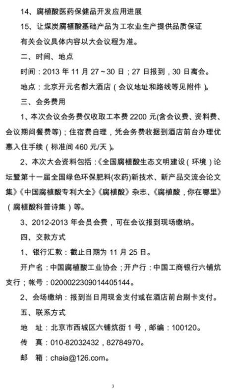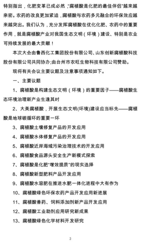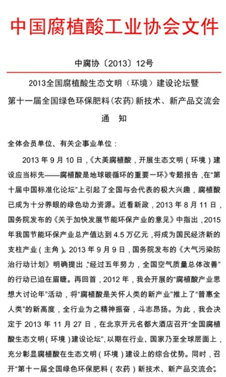 2013全國腐植酸生態文明(環境)建設論壇暨第十一屆全國綠色環保肥料農藥新技術、新產品交流會通知