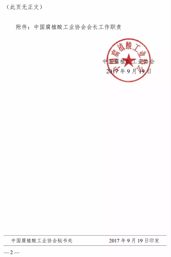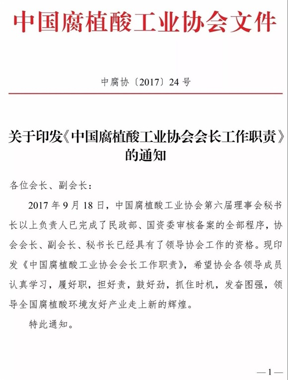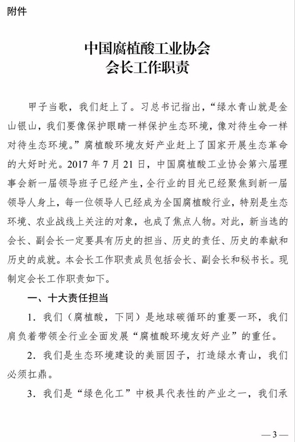 關(guān)于印發(fā)《中國腐植酸工業(yè)協(xié)會會長工作職責(zé)》的通知
