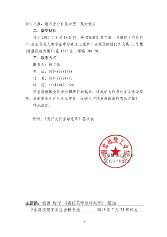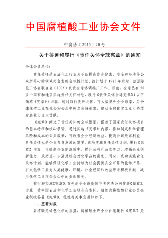 關(guān)于簽署和履行《責(zé)任關(guān)懷全球憲章》的通知