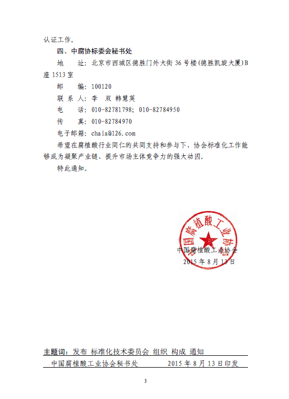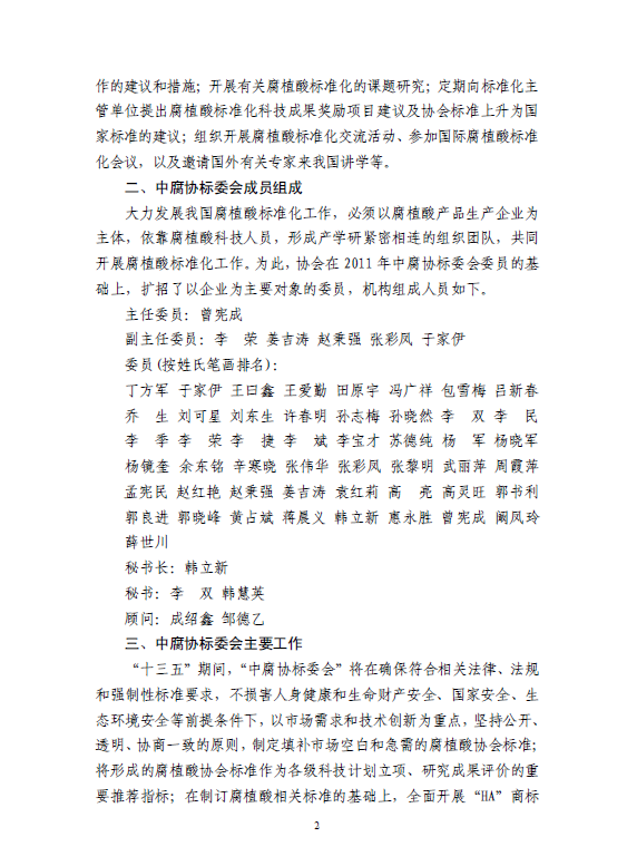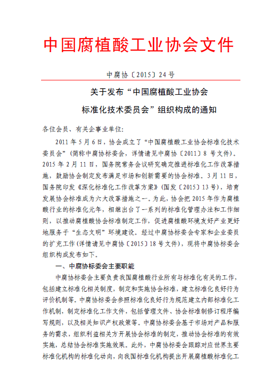 關于發布“中國腐植酸工業協會標準化技術委員會”組織構成的通知