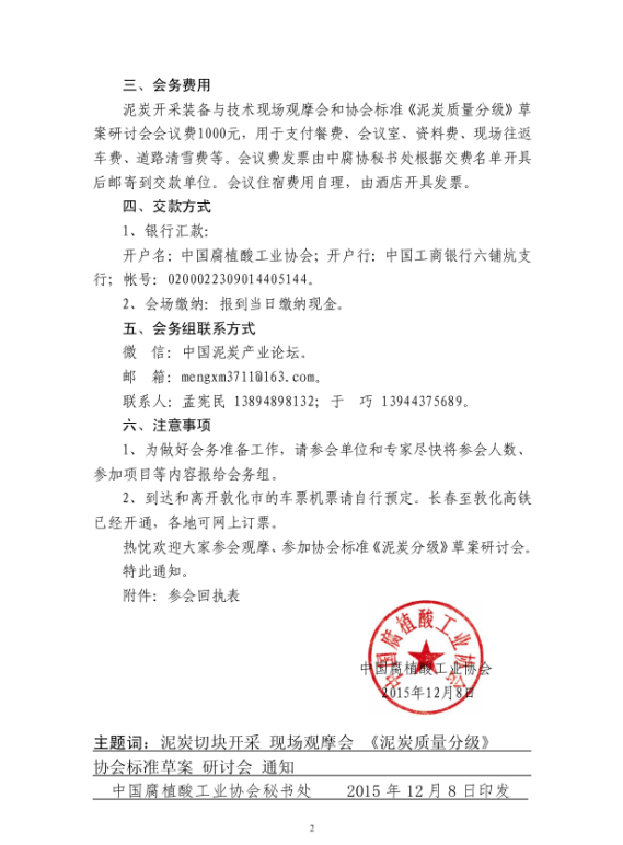 關于召開“泥炭切塊開采現場觀摩會暨協會標準《泥炭質量分級》草案研討會”的通知