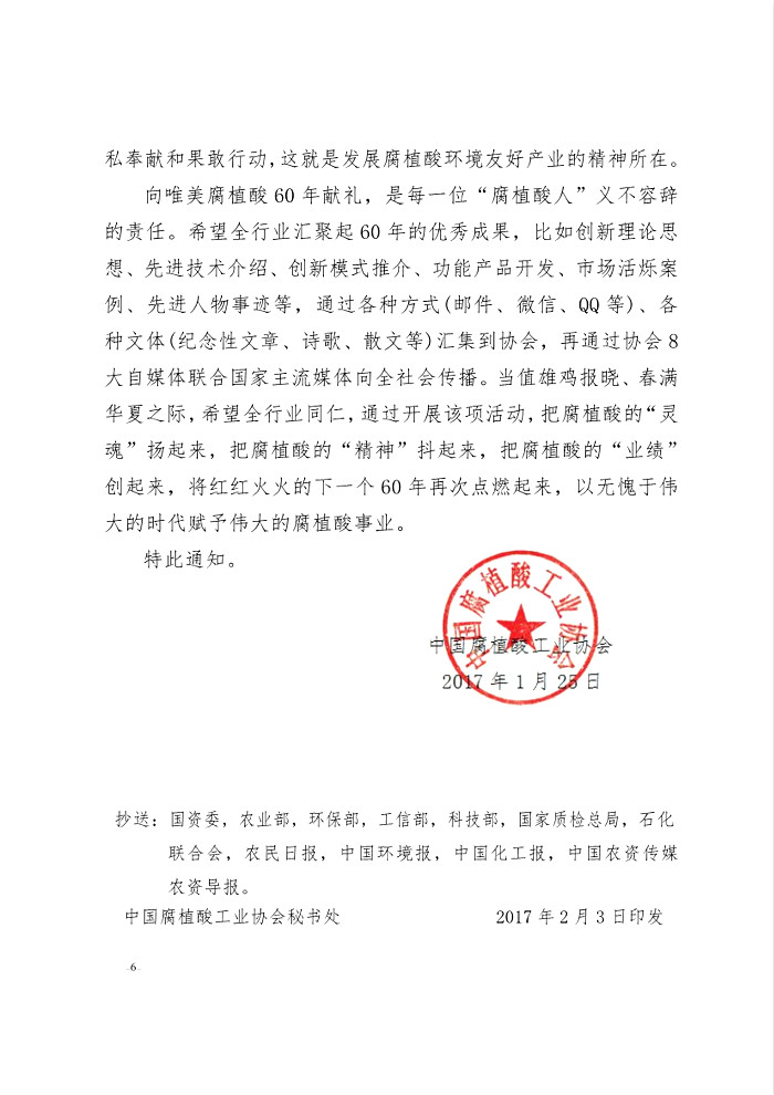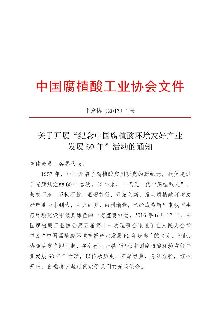 關于開展“紀念中國腐植酸環境友好產業發展60年”活動的通知