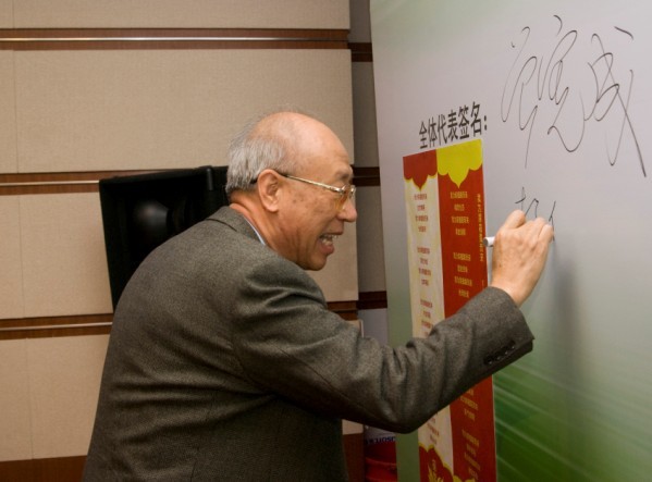 楊偉才副會長在中國腐植酸綠色低碳宣言簽名版上簽名