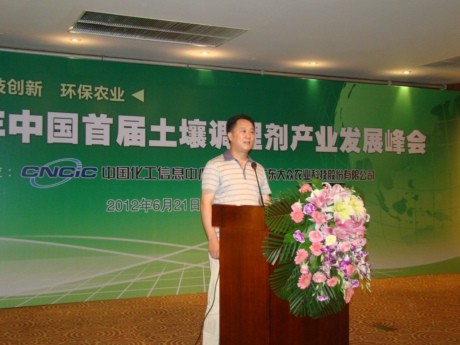 2012年6月21日,由中國化工信息中心主辦的“2012年中國首屆土壤調理劑產業發展峰會”在北京美泉宮飯店舉行。來自農業部全國農業技術推廣服務中心、國家化肥質量監督檢驗中心、中國農業科學院、中國農業大學、廣東省農業科學院等單位的有關負責人、專家以及業界知名企業的代表230多人出席了此次會議。中國腐植酸工業協會曾憲成理事長應邀出席了本次會議。