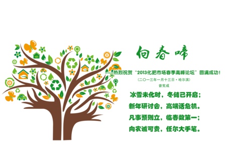 2013年1月13日至14日,由中國化肥網主辦的“2013年中國化肥市場高峰論壇”在冰城哈爾濱友誼宮成功舉行。來自全國農機推廣中心、國家糧油信息中心、中國氣象局等單位的權威人士以及眾多業內廠商代表參與了本次盛會。