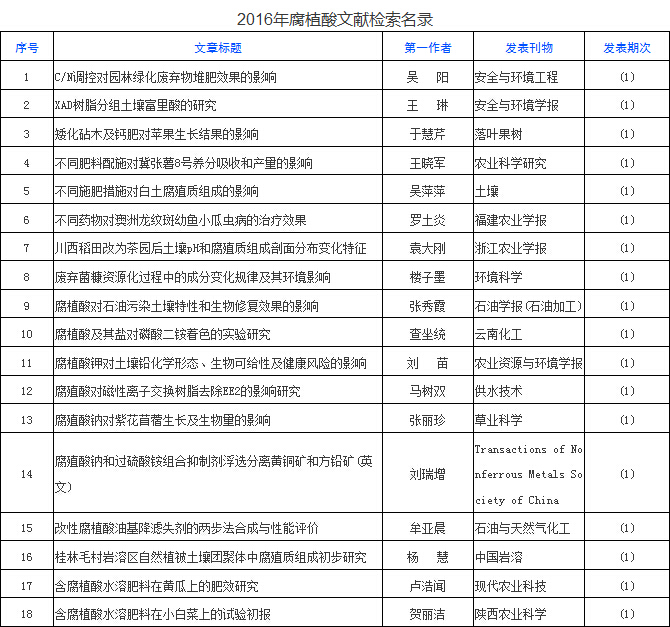 腐植酸,出水芙蓉為那般——2016年腐植酸文獻檢索名錄一覽