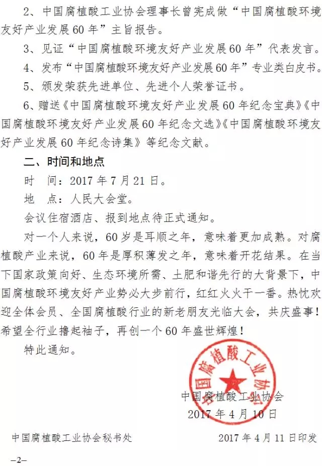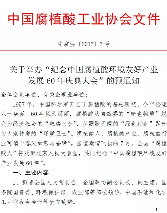 關(guān)于舉辦“紀(jì)念中國腐植酸環(huán)境友好產(chǎn)業(yè)發(fā)展60年慶典大會”的預(yù)通知