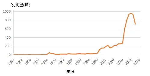圖1 1958-2016年腐植酸肥料科研文獻(xiàn)變化趨勢(shì)