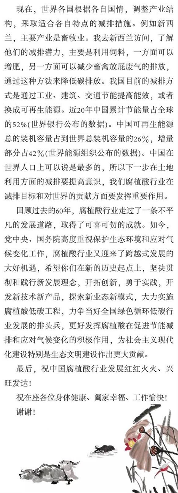 導言:2017年7月21日、22日,天風高闊,甘露降臨;慶典四象,百般和諧。“紀念中國腐植酸環境友好產業發展60年暨中國腐植酸工業協會成立30周年慶典大會”、“中國腐植酸工業協會第六次會員代表大會”、“腐植酸綠色革命論壇”分別在北京人民大會堂和中國職工之家舉行,慶典系列會議取得了圓滿成功。今天,編發中國氣候變化事務特別代表、全國政協人口資源環境委員會副主任解振華在慶典大會上的致辭全文(根據錄音整理)。