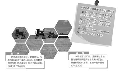 一個佐證是,僅2011年,全國耕地面積凈減少49萬畝,但1999年至2010年,全國通過土地整治建設高產穩產基本農田195萬畝,補充耕地約51萬畝,農田產出率提高10%至20%。