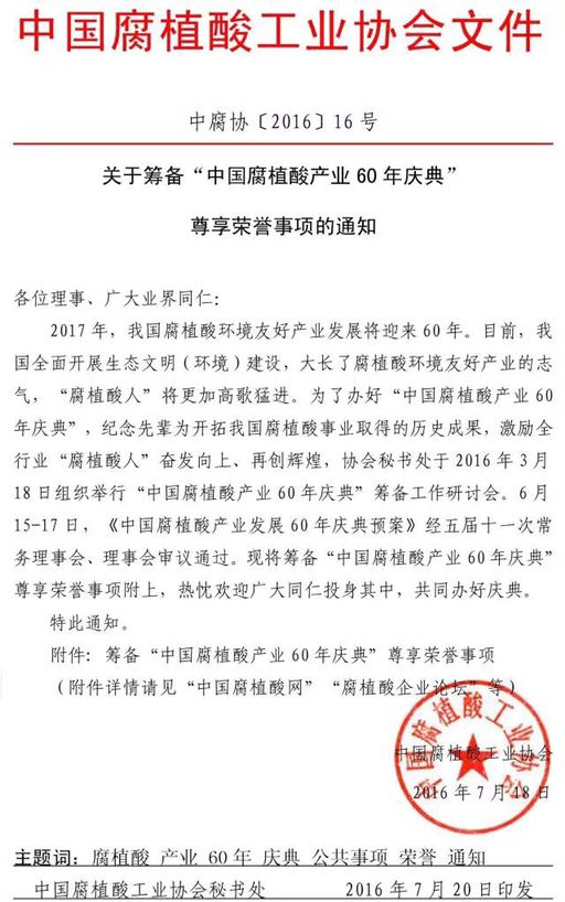 關于籌備“中國腐植酸產業60年慶典”尊享榮譽事項的通知