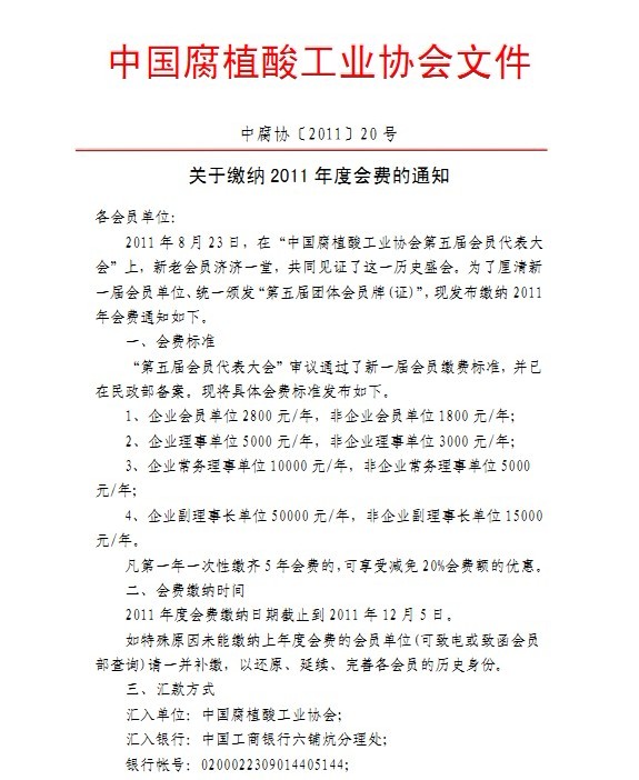關(guān)于繳納2011年度會(huì)費(fèi)的通知