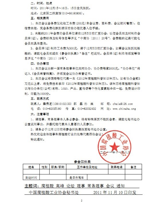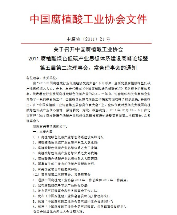 關于召開2011腐植酸綠色低碳產業思想體系建設高峰論壇暨第五屆第二次理事會、常務理事會的通知