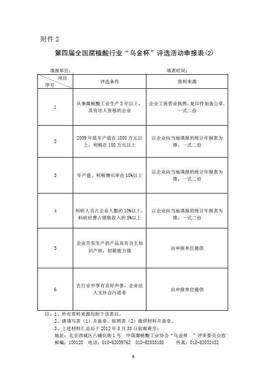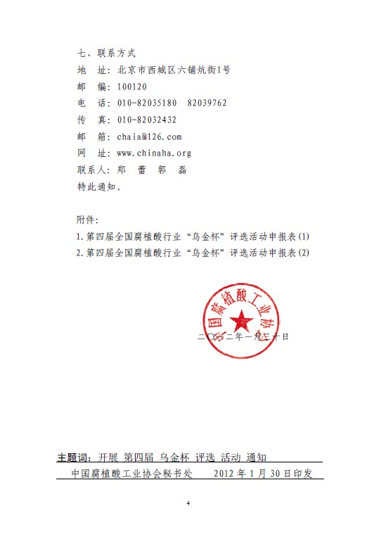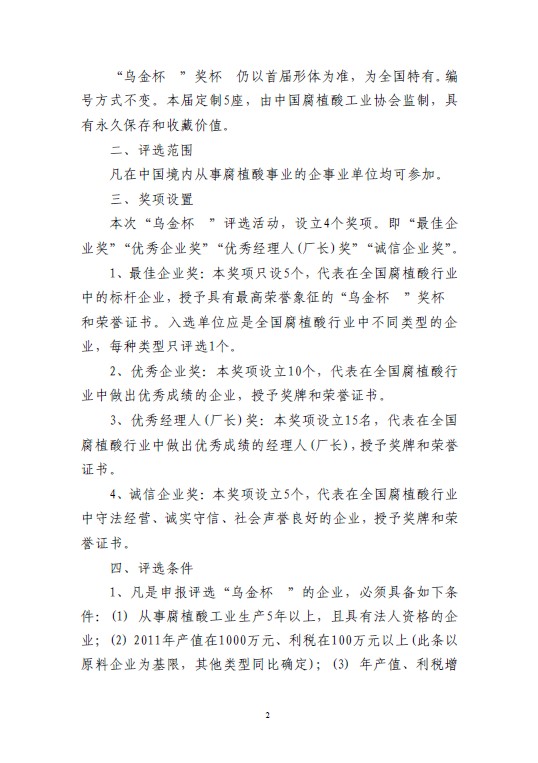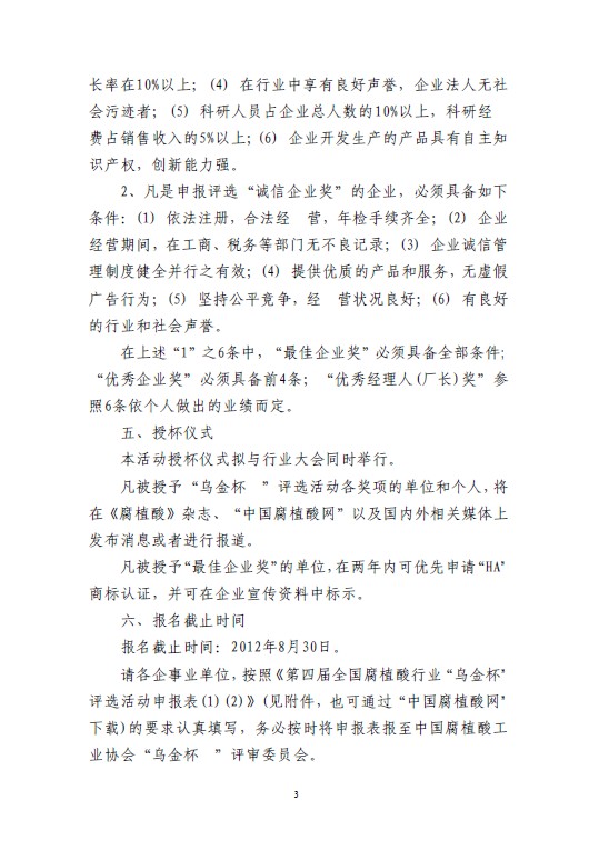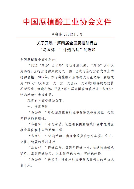 關于開展“第四屆全國腐植酸行業‘烏金杯’評選活動”的通知