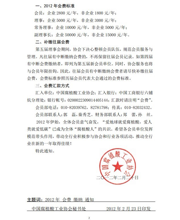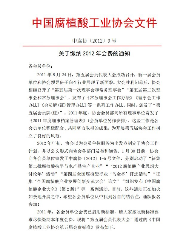 關(guān)于繳納2012年會(huì)費(fèi)的通知
