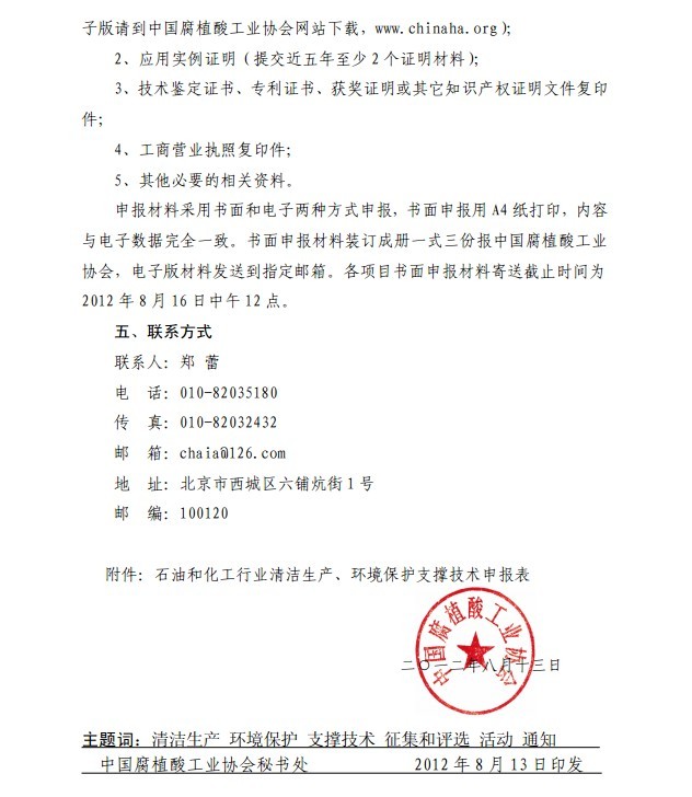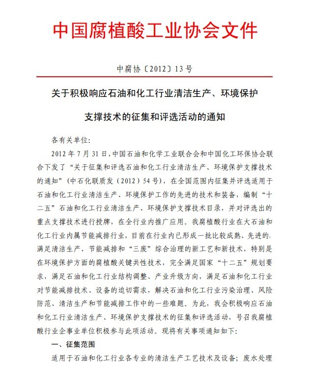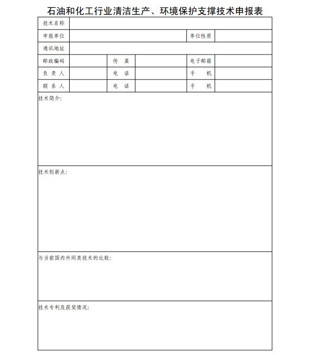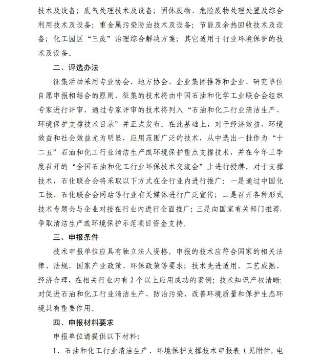 關于積極響應石油和化工行業清潔生產、環境保護支撐技術的征集和評選活動的通知